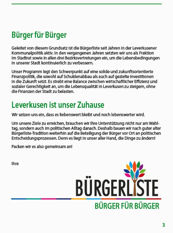 Mehr über den Verein Bürgerliste e.V. Leverkusen und sein Engagement für die Stadt Leverkusen…